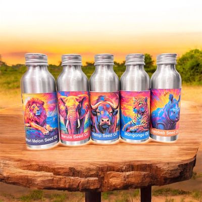 Welcome to our collection of premium oils, where nature's finest ingredients come together to rejuvenate and revitalize your skin and hair. Our Big 5 Oils set includes Marula seed oil, Mongongo seed oil, hemp seed oil, Kalahari melon seed oil, and baobab oil – each offering a unique set of benefits for your daily beauty routine.